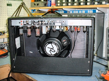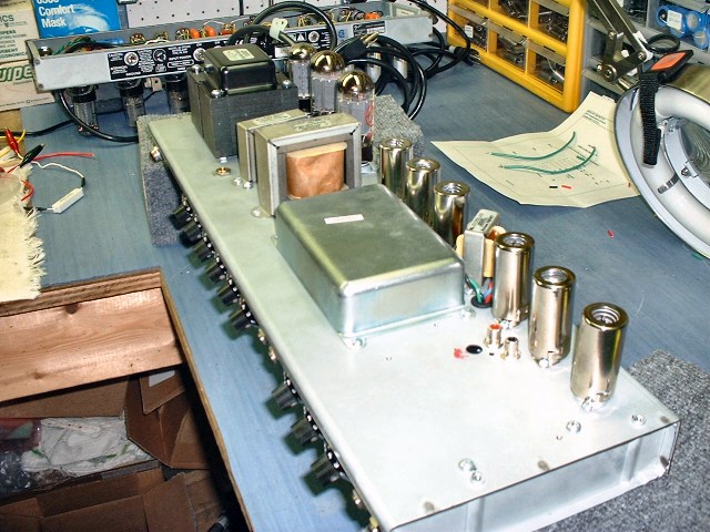 The rebuilt amp is fitted with tubes and is ready to fire up