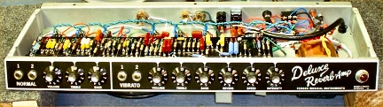 After the amp was buttoned up, it was time to give it a workout. I was astonished at how smooth, snappy and swirly the Vibrato channel sounded. It made my pulse quicken. My first thought was this is the great tone I’ve heard in the blues clubs of Chicago. My company’s headquarters are in Chicago (I’m a printer by trade) and when I get out there, I spend my evenings in the blues clubs. Depending on how I dialed in the amp and my guitar, I could go from a swampy, smoky sound to the brilliant tones of Albert Collins. I like a nice, crisp attack to the notes and the Vibrato channel has got it.
