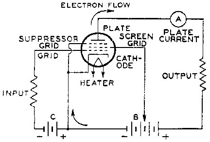 The screen grid helps keep the electron flow stable by reducing oscillations. The suppressor grid deflects secondary emissions back to the plate, which results in more power. The plate receives the electrons coming from the cathode. As current flows from the cathode to the plate, the varying preamp signal on the grid is amplified big-time and then it flows into the output transformer, which drives the speaker.